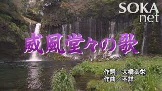 創価学会の公式学会歌「威風堂々の歌」。座談会や会合で歌われる3番までの歌詞を収録した動画。作詞は大橋幸栄。