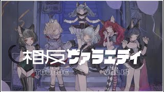 VALISの「相反ヴァラエティ」は、6人のバーチャルシンガーによる合唱曲です。難易度レベル5の超むずかしい楽曲で、3分14秒の間にハイスピードな歌詞が次々と展開します。上級者向けのタイピング練習に最適な、やりがいのある一曲です。