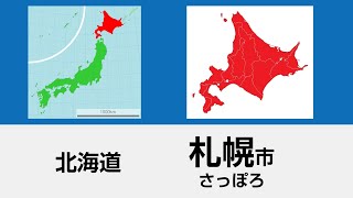 「パプリカ」のメロディーで日本の都道府県と県庁所在地名を歌った覚え歌です。地方ごとの地図付きで社会科学習に役立ちます。